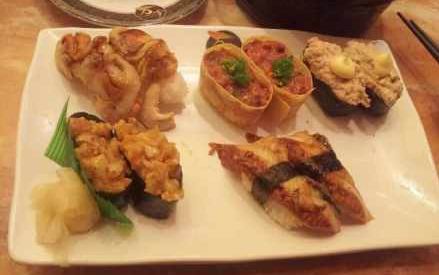 这里的环境一般,卫生很好,服务态度很好的,很多人帮衬的。吃三文鱼刺身,一直半价,每片都很厚的,切工也是很一般的,很好吃的。鹅肝芒果寿司,入口很好的,很好吃的。吞拿鱼沙律,分量多,吃得很好吃的。以后也会帮衬的。…查看更多