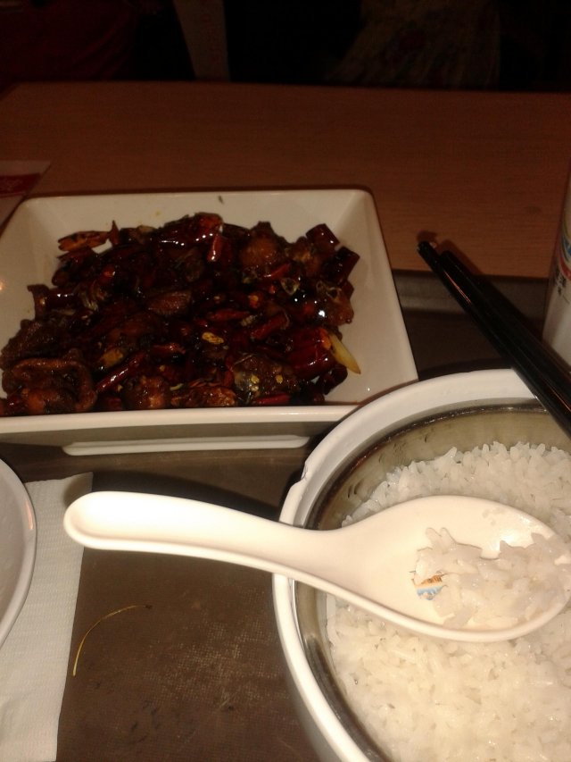 这里的环境很好,卫生也很好的,服务态度一流的。要了个炸子鸡的,分量多,炸得很脆的,很好吃的。水煮鱼,分量较多,口味很一般,鱼肉较硬,也入味的。拆骨肉焖肥肠,很肥腻。都是肥肠,不过我很喜欢的,很好吃的。…查看更多