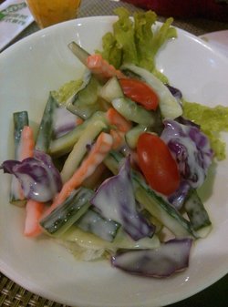 这家店自从看到过某人拍的照片后就一直想吃来着,但是某人就说不好吃,怎么也不带我去!光棍节的那天突然就想起这家店了,然后和朋友一起去了,团了个99元的双人餐,店里人挺多,店面不大,光线有点暗,进门有个主管还是老板样子的帅哥双手合十,说了一句【萨瓦迪卡】,引我们入席,之后有服务员验证,没多久就上菜了,服务员的衣服很有民族的感觉……先上了个蔬菜沙拉,不知道用的是什么沙拉酱,甜酸的口感,味道不错,里面有黄瓜条,紫甘蓝,胡萝卜条,小柿子,西生菜,最下面用一片生菜垫着的,量不多,味道不错,给4星然后上了两杯饮品,我的是红色的,里面看着像是花瓣,但是口感有点像是果肉的,味道也还好,3星接着上了炭烧猪颈肉,依旧是用生菜垫着的,很薄的一片,量少啊,有点肉有点糊糊的,有肥有瘦,但是口感很紧实,有点微甜,我和我的小伙伴都表示很赞,给5星过了一会儿又上了咖喱鸡排,味道有点怪怪的咖喱,微辣吧,鸡排还可以给个3星接下来好长时间没有上菜,估计是忘记了,朋友催了一下,服务员说是人多得等一下,过了一会儿先给我们上了米饭,说是香米,其实就是一般的大米饭,连五常米都算不上,上面撒了些黑芝麻又过一会儿终于上了那个辣椒膏炒鱿鱼,闻着有点臭臭的,有点重口味,味道能给个3星半那样子吧最后吃得很饱,多亏了那个米饭,不然真吃不饱啊!…查看更多