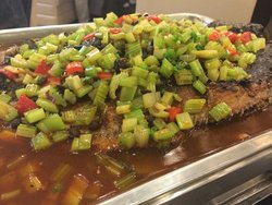魔都烤鱼店,大大小小数不胜数。这家倒还是做的不错的。虽然烤鱼的个头是越来越小,不过优惠也是越来越多了。午市的时候和同事点了98元的鲶鱼套餐,除了一条鱼之外,还有4个素菜可以涮着吃,其实羊毛出在羊身上,这些都算在套餐里了而已。选的是烧烤味的和麻辣味的,肉质倒是很厚的,本来挺服务员小哥说每条都确保有3斤的重量,原本不信,看来是真的。4个素材我们选了魔芋丝,金针菇,莴笋片,腐竹。店家直接将选好的东西放到鱼肚子里一起端上来的。等鱼吃得差不多了,里面的蔬菜也煮得入味了。这个方法不错,比小店里另外端上来要自己放进去涮要好。这样直接放进鱼肚子里,可以更入味,蔬菜本来就是要入味才好吃嘛。因为个人喜好,本人另外还点了份钵钵鸡,说实话。的确是专心只做一道菜的节奏啊。…查看更多