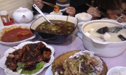我们4个人点了5个菜,菜的分量也很足,到后面都没吃完,老板娘人很好,她们还有只很能生的猫猫,据说已经生了50个小崽了