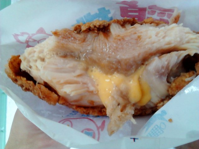 果日去到大概中午12点,间店岩开门,有4、5个人排队买鸡排。不过当时店里边只有一个人,收钱、炸鸡排、比食物,全部都系果个人一手包办,所以好慢。店面好细,买咗只可以系路边食,冇得坐。要咗一个爆浆鸡排(18蚊),鸡排岩炸好,热辣辣,一直咬,都要咬到比较入嘅位置,先开始有芝士流出黎。鸡排偏咸,不过食得唔多嘅话,就唔会好觉。服务态度都可以嘅,不过因为鸡排都系现点现卖,所以会几慢,需要有一定嘅耐性。…查看更多