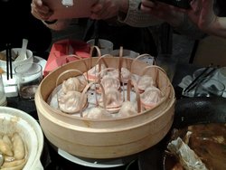 这家融合菜就在世博大道附近,地铁出来就到了,在一层半~午市点心很划算哦~4.8折~品种也很多的,小笼包,皮薄馅大,汤水也蛮多的,而且不油腻,肉馅很紧实,垫底的胡萝卜蒸的酥烂~黄鱼春卷,馄饨皮炸的很脆,内陷的黄鱼鱼肉很多,有点腥味儿~还有荠菜什么的,不错吃~干贝什么粥,分量还蛮大的,粥很鲜,是现煮的,干贝丝很多,青菜丝,虾仁,小鲍鱼丁什么的,海鲜很多,蛮好喝的~…查看更多