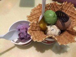 公司发的哈根达斯的券,正好用了,一个单球的,一个多种口味的,喜欢吃抹茶的,味道清清淡淡的,芒果和巧克力味道的觉得一般般的,冰淇淋的口感很喜欢,细滑的,现在一个球的价格都好贵的,要是有活动还不错的。…查看更多