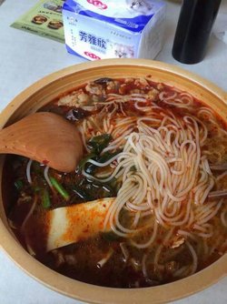 之前在微信里面就很火的,很多朋友都是很推荐的,环境还不错,刚开的店,服务也还不错,人挺多,我不是很能吃辣,只能吃点微辣的,份量就很多,很大一碗的,米线超多,非常弹,劲道,汤超好喝,有点微辣,但是还是可以接受的,农家酥肉味道赞,蔬菜也多,价格16元,吃的很饱,好吃。…查看更多