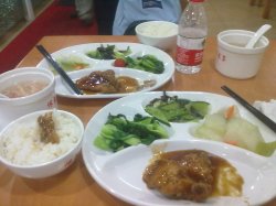这家店不好找,其实是在普陀区图书馆的广场上,从电梯下到负1楼,就是了。餐厅还算蛮大的,主要以提供客饭为主。单位这次点的套餐有大排、青菜、黄瓜、冬瓜,当天的例汤是番茄蛋汤。大排,从图上就看到了,不是很大。但好在够厚,也很嫩,味道不错。青菜就比较生一点,偏咸了。 冬瓜炒青椒胡萝卜,黄瓜炒黑木耳,都很一般,没有特别好吃。汤还可以,典型的上海味道的番茄蛋汤。很清淡。总体一般……他们有其他的菜的,可以另点。…查看更多