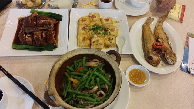 128蚊4人餐十几种菜式任你选4样,禄鹅食过一次之后觉得味道唔错,砍件嘅都系鹅俾部位淡淡肉,芡汁做得唔错虽然就咁用豉油做出,虾酱豆角鱿鱼味道都唔错,浓浓嘅虾酱味,豆角同鱿鱼都入晒虾酱嘅鲜味,香煎马鲛鱼,喜爱食鱼嘅我爱不释手一个人食晒一条,两面煎得金黄香脆可口,再点一点配上嘅鱼露也有另一番嘅风味。…查看更多