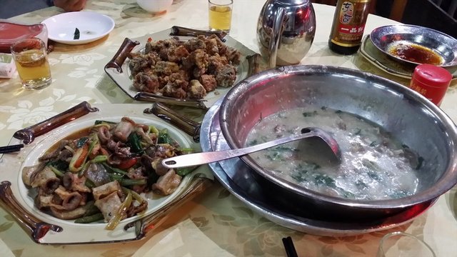 第一次半夜三更驱车嚟食猪杂粥,听闻话12点嘅猪杂系最新鲜嘅,环境大排档地方都算几大,估唔到都咁多人嚟食,附近周边都有一两间饭店,好啦新鲜嘅猪杂当然要嚟煲粥,有猪腰猪面肉猪肠猪骨猪肝,咁多配料除佐猪骨之外都要嚟煲粥,加佐D枸杞叶好滑,粥水熬得好绵料好足够,酱爆猪肠入口好惹味仲加佐少少嘅猪面肉落去爆炒好够锅气,检验排骨觉得炸多过椒盐,满满都是排骨好少肉味道都算唔错嘅。…查看更多