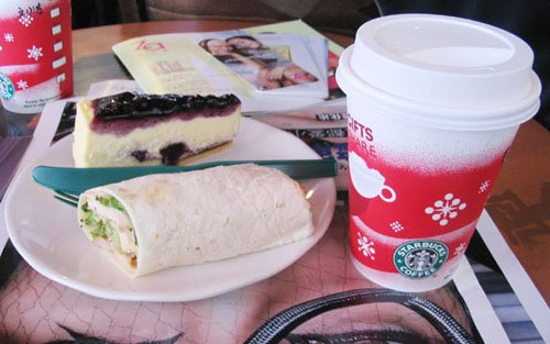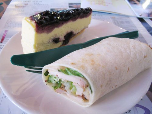 在北京附近,这家店算是挺不错,有2层选择,之前来过一次,还是喜欢坐上面一层,光线舒服啊~!算是下午茶时间,反正休闲得很,点了一个蓝莓芝士,之前吃过觉得好吃,这次再点,还要了一个鸡肉卷,朋友要了一件芝士,要了一个吞拿鱼肉卷,我不太爱咖,要了一杯橙汁,朋友要了一杯拿铁~!香妃糖味的,偏甜啊,与偶的酸橙汁刚好配成一对~!橙汁很好喝,有一些沙冰~!芝士蛋糕还是很好吃,蓝莓是会有些偏酸,但可以中和芝士的浓味~!饼底也很好吃,偶然吃一次感觉很满足~,鸡肉卷很多肉,皮也很不错,这个味道很清爽,不太爱吞拿鱼肉卷,觉得有些怪怪的,不够清新的感觉~!在这里过一个休闲下午,想想旅行的地方,准备下一次的行程~!…查看更多