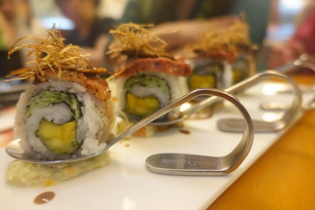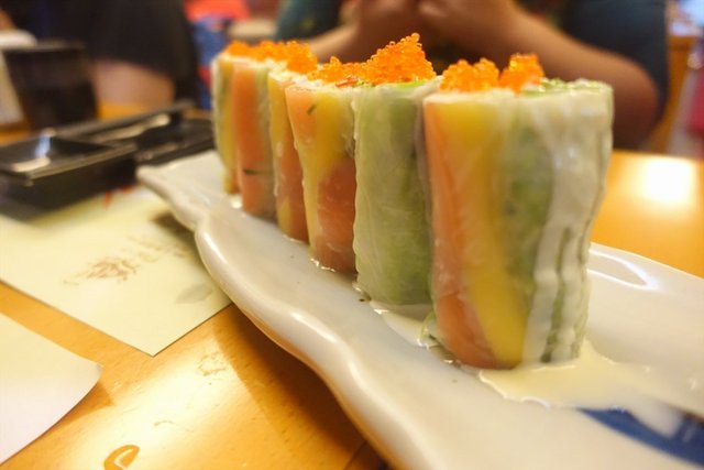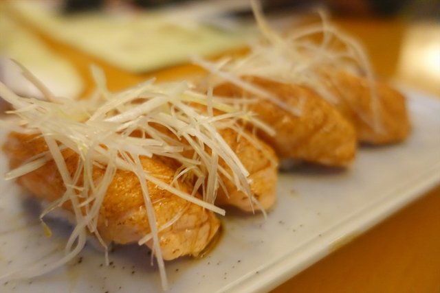 晚餐 大渔海鲜刺身饭 2015-10-27久闻此店大名,终于有空得以前去一试。店铺门面有点小,面对南方证券大厦的左边有条小路进去。晚上六七点左右去到,人不会很多,有种宁静的居酒屋的感觉,适合三五知己谈天说地。人多聚会的话可能稍微就会不大好聊天。可能因为即点即做的原因,上菜速度不会太快,但是间距安排还是挺合理的,吃完一道刚好就会再上下一道。春卷沙拉感觉好特别,外面那层春卷皮一点都不韧,就是蔬菜有点多不大能吃得到肉的感觉。刺身拼盘鹅肝入口即溶,三文鱼厚切啖啖肉。八爪鱼刺身一般给我的印象都是偏韧难嚼,这家居然还挺好咬的。这家的芥末是现磨的,吃起来并不会有呛辣感。豚肉煮一般会在居酒屋才见得到。可惜稍微偏油腻了一点点,感觉吃完以后就吃了满口的猪油。瘦肉部分还是挺好吃的,口感类似煲汤的猪肉,但又会比那种口感要好一点没那么柴而且还很入味。金针菇肥牛卷,酱汁调得不错,但就是肥牛片稍微韧了点比较难咬开,金针菇吸足酱汁好好吃。炸豆腐感觉比较一般,没什么特色。土豆泥吃起来绵滑,加有苹果粒倍感清爽。寿司和刺身饭食材新鲜,鱼肉比饭还要多,相当有诚意。于是不得不说的是,它家的寿司饭真的是我吃过这么多家以来算得上好好吃之一。本人对米饭真的很挑剔。鹅肝熏肉卷配有特色汤匙,吃起来方便又美观,最重要的是,味道好好吃。饭后还赠送山楂水,非常有特色。…查看更多+ 10以上食记乃用户个人意见 , 并不代表OpenRice之观点。赞好分享晚餐 大渔海鲜刺身饭 https://s.openrice.com/KtbT0m0fG0G00检举 张贴 评分4味道4环境4服务4卫生3抵食推介美食春卷沙拉¥28刺身拼盘¥148豚肉煮¥32金针菇肥牛卷¥32炸豆腐¥28土豆泥¥28寿司¥68金龙卷¥48火炙三文鱼腩寿司¥48火炙蟹棒寿司¥48鹅肝卷¥68三文鱼刺身饭¥68山楂汁用餐途径堂食