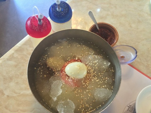 冷面 韩尚宫 2015-10-29搭车的时候经过了好几次,一直想去试一试。于是某天就刚巧走路经过就进去了,那时还是炎热的夏天,走得又热又累,于是就点了碗冷面。韩国料理店一般都会送餐前小菜,这家送的还挺多的,一共有八款。几本就是各种韩式酱菜,除了种类不大一样,味道都差不多。冷面上桌吓呆我了,居然有这么多的冰渣。面以及汤底味道比较淡,会配有醋、芥末油以及辣椒酱自己调。由于不是很会调,所以感觉味道比较一般。…查看更多以上食记乃用户个人意见 , 并不代表OpenRice之观点。赞好分享冷面 韩尚宫 https://s.openrice.com/KtbT0m0s0CG00检举 张贴 评分3味道3环境3服务3卫生3抵食推介美食冷面¥35用餐途径堂食