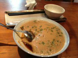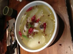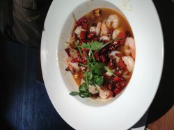 订不到别的饭店,清明家族小聚选了这家店~,蛮有意思的,门口还贴的日本人与狗不得入内的标语。这家店主打吃湘菜 ,基本菜都是偏辣的,不过鱼头做的真不错,挑的是千岛湖的大鱼头,选择了一半蒸一半汤的作法,鱼头蒸的满入味的,而且鱼头新鲜,吃起来非常给力。鱼头汤相对来说,觉得煮的时间短了点,还带有点鱼腥味,不过汤还是蛮鲜的。五香驴肉算是不辣的菜了,一点都不老,很嫩,这个不错。串串虾是很多人推荐的菜,蛮不错的,虾很入味,也很Q弹,还有一个粉丝蛏子皇我很喜欢,虽然蛏子小了点,不过很鲜,而且最出彩的是粉丝,吸收了蛏子的美味,非常好吃呀,就是稍微有点油。总体来说,还不错的一家店,菜做得蛮好的,但是卫生条件蛮一般的,尤其是餐具,新拆开的居然带有瓜子壳,或者有黑点,甚至还带有玻璃碎,把小表妹的手扎出血了。服务员也说这家送餐具的经常被提意见,就不知道为什么老板不考虑换一个,说实话,这么多餐具让我不满意,很难再去光顾了呀…查看更多