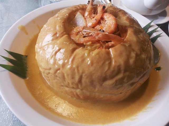 好吃的面包虾 牛桥泰菜餐馆 2014-04-27餐厅在华乐路的广怡大厦,广怡大厦里面的餐厅都比较多,牛桥泰菜餐馆就是其中一间,餐厅环境不错,看着有点泰国情调,墙上挂有泰国领导人的照片,服务员挺热情,团购了一个套餐,感觉价钱不贵。咖喱面包虾:上来的时候看见很大一个面包,面包泡在咖喱汁里面,面包里面有虾,虾好新鲜,吃虾的时候沾点咖喱汁真是好吃,面包浸着少许咖喱汁,咖喱汁不会太辣,面包放入嘴中,咖喱汁和面包混入口中,感觉别有一番风味,面包最好尽快吃掉,因为面包浸着咖喱汁太长时间,面包会变软,口感就会变差,2个人只吃完这个咖喱面包虾的2/3,我已觉已经有7成饱了,这个咖喱面包虾真的值得推荐。椰汁:椰子味较浓,好喝。冬阴浸肥牛:肥牛不会太肥,冬阴汤我觉得有点辣。所以没有多吃。…查看更多以上食評乃用戶個人意見 , 並不代表OpenRice之觀點。讚好分享好吃的面包虾 牛桥泰菜餐馆 https://s.openrice.com/KtbT0m0ZNy500檢舉 Jolin126 咖喱面包虾好特别哦。下次去哪吃饭的时候,点来尝尝,谢谢推荐2014-04-28 回覆 siteng113 咖喱面包里都是虾的吧2014-04-29 回覆 張貼 評分4味道4環境4服務4衛生4抵食