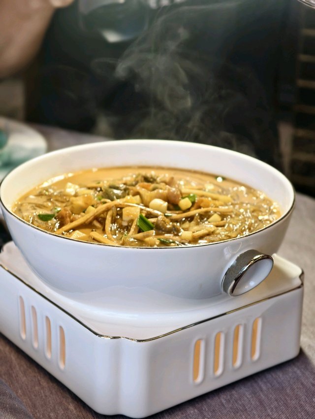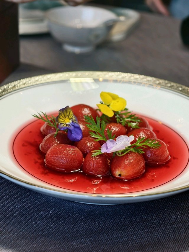 香蜜湖畔的「荷域·四时粤味」,為我們的商務午宴奉上了一場令人難忘的粵式味蕾之旅。餐廳環境雅致,服務周到細緻,是洽談與品味兼得的理想之地。開篇驚艷:涼菜「洛神花千璽番茄」先聲奪人,小番茄經洛神花汁浸潤,酸甜清爽,晶瑩剔透,瞬間喚醒味蕾。溫潤滋養: 「黑虎掌燉海鴨湯」湯色金黃清澈,菌香濃郁醇厚,海鴨肉質細嫩,湯頭溫潤滋補,盡顯粵式煲湯精髓。熱菜薈萃鮮美絕倫:「臺州沙蒜煮豆麵」沙蒜(海葵)鮮美彈牙,豆麵吸飽濃郁湯汁,口感獨特,鮮味滿溢。濃郁之選:「普寧豆醬煮膏蟹」是當日亮點!膏蟹豐腴飽滿,橙紅蟹膏誘人,普寧豆醬的鹹鮮完美襯托蟹肉的鮮甜,醬汁濃郁下飯。鑊氣十足:「風味醬炒脆皮粿粉」鑊氣逼人,粿粉外皮微焦酥脆,內裡軟糯,醬香濃郁,是地道粵式小炒風味。其他如「鮮魷豆芽炒沙洲韭菜」爽脆、「海味煮瓜脯」清甜、「啫啫炒水東芥蘭苗」脆嫩鑊氣足,均在水準之上。暖心收尾:「無骨鯽魚粥」綿滑細膩,魚鮮完全融入粥底,無骨處理貼心,溫熱落胃,為盛宴畫上完美句點。整體而言,「荷域·四时粤味」的商務午宴菜單設計考究,食材優質新鮮,烹飪技藝精湛,既保留了粵菜傳統精髓,又不乏創新巧思。從精緻涼菜到濃郁熱炒,再到暖心粥品,每一道都展現了廚師團隊的功力。環境舒適,服務專業,是商務宴請、品味高質粵菜的極佳選擇,物有所值,值得推介…查看更多