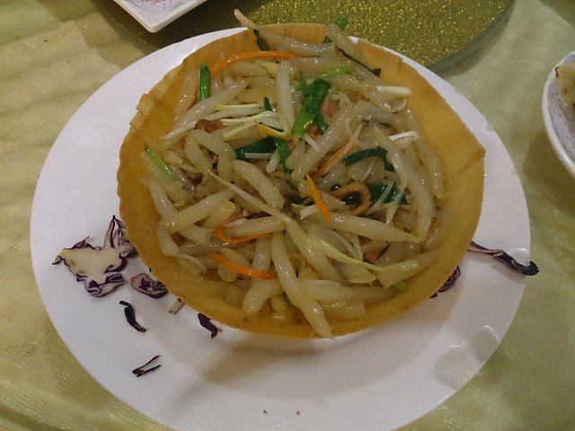 还记得很久以前在这里吃过一次午饭,这次来就是别人介绍的早茶了,人均十多元就可以吃的超级饱的一家酒楼,也太划算了吧,就是环境稍微脏了点,感觉碗筷都没有洗干净,油腻腻的。银针粉,分量挺多的,口感黏黏的,炒的非常入味,原来那个托盘是可以吃的,香香脆脆的。…查看更多