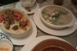 经常来这家广州蕉叶,感觉味道不错,价格有点小贵。咖喱牛腩,咖喱有点微甜,牛腩挺入味,不错~荷叶糯米鸡,鸡肉蛮多额。。香草汁牛肉虾球(67块,我唯一记住价格的菜,感觉有点小贵),怎么说呢,牛肉蛮嫩的,但吃口略咸,微辣。。菠萝虾饭,儿子吃的比较多,量还行。。加上2杯芒果汁,打了8.8折(意外惊喜,进去时还真不知道会打折),算下来206元,后来要了发票刮开又中了5块钱,就等于200块吧,呵呵~偶尔尝试下东南亚风味的菜,也不错~PS:整个过程中,那个乐队满场跑满场唱,热闹是热闹,但略有小吵~…查看更多