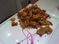 这家店的环境好美好美,超级有爱,整个布置都是白色为主,店里还有一架钢琴,老板是花了一定心思的。据说他们家中午是咖啡厅,有各种甜品饮料之类的,到了晚上就是名副其实的有机餐厅了,这个创意很不错。晚餐是5点开始供应,我们5点多到的,人真心少,一直到吃完也只有两桌。菜单上面的选择不多,点了芥末色拉虾、芝香牛蛙、有机蔬菜和避风塘紫薯仔,算是推荐的吧。服务也很好,马上就送来了小食和茶水。说实话,是不是有机的真心尝不出,不过味道确实不错,牛蛙蛮嫩的,不是很辣,色拉虾的个头不小,淡淡的芥末味。价格还算是可以的,吃吃环境…Read More