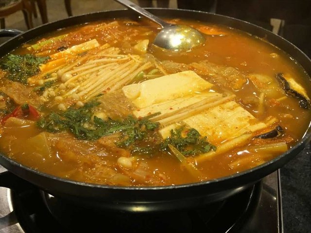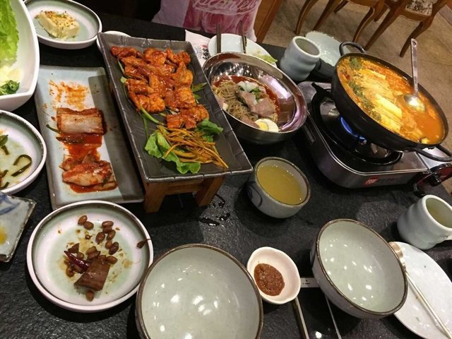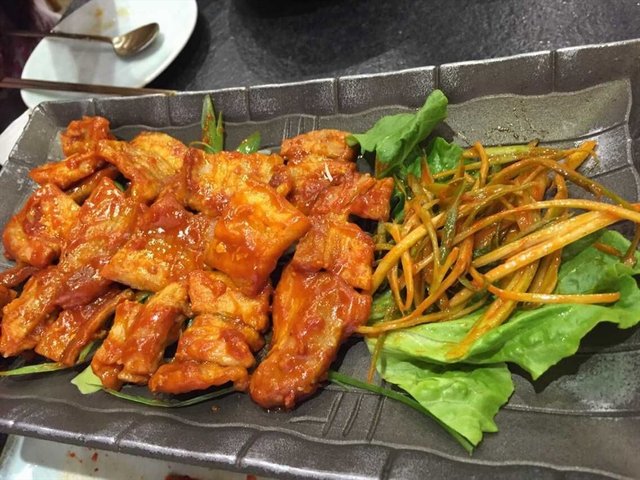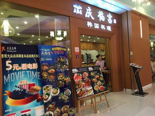 世纪汇这边新开了一个韩国烤肉店,周二晚和2个同事一起来探店。这家店在世纪汇,新开没多久。话说世纪汇也是新开没多久的商场,在华强北地铁站边上,上海宾馆附近。世纪汇的人流量特别少,里面没什么人气,5楼开的绿茶也带不来人气,甚至这里的绿茶人流量比其他地方的要少得多。建议世纪汇多引入几家外婆家、探鱼这样的店,把人气慢慢带起来吧。这家店在六楼,用的团购券。周二晚上人不多,客人来了服务员会用韩语的欢迎语。送6个小菜,续加只能加2-3个。小菜的味道还不错,只是分量少一些。土豆泥软嫩可口,卤藕香糯,凉粉同事说没什么味,太清淡。海带丝一般般。豆芽比较普通。南瓜羹很不错,很香甜。他们的烤肉都是在厨房烤好再端上来的。辣酱五花肉,58元。这道菜比较无语,我觉得还是不加辣酱比较好。酸泡菜猪肉火锅,小份70元。分量感觉还挺多的。味道也不错,汤也比较鲜。比较给力!白菜泡菜,20元。分量比较多,口感还可以,有一点点辣,酱料适中。庆福宫拌冷面,36元,这个感觉比较一般吧,没吃完。金枪鱼紫菜包饭,28元,口感不错,一口一个。…查看更多