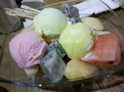 带老爸老妈来这里吃晚饭,人真的很多等位子的时候能喝他们家提供的茶水和爆米花,不过好在去的早所以没等多久,因为天热先点了一份水果冰激凌,价格12元还算便宜,冰激凌是最普通的感觉没有什么奶味倒是水果比想象中多很多,而且都非常的甜。…查看更多