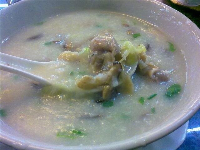 麻麻滴 强记鸡粥店 2011-04-07强记鸡粥 听过很多次,有很多分店,但是没有跨进过他家门槛。招牌就叫鸡粥,那鸡粥的味道要很有底气才行了,端上来满满一大碗,鸡肉的身影还是看得见的,这个必须滴~~想起一个笑话:有一个人去吃饭,看到餐牌上有“鲍鱼炒饭”,而且价格不贵,他爽快的点了一碗,充满期待等着上饭,哪知饭上了,这人在饭里头拨来拨去就是找不到鲍鱼的影子。一怒之下叫来厨师“你们的鲍鱼炒饭怎么鲍鱼影子都没有?!!”胖胖的厨师回答到“我就是鲍鱼啊,我就叫鲍鱼”~~~菇菌肠粉卖相不是很漂亮,但咱也认了,重要的是味道不是?味道淡淡的,很快就消灭了它。…查看更多以上食評乃用戶個人意見 , 並不代表OpenRice之觀點。讚好分享麻麻滴 强记鸡粥店 https://s.openrice.com/KtbT0m0yC0000檢舉 張貼 評分2味道3環境2服務3衛生2抵食用餐日期2011-03-17
