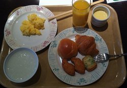 西郊宾馆牡丹厅他家是老牌的一家宾馆,环境好,价格还是比较实惠的,我点了他家的自助餐,要去的比较早,晚了很多食材都没有了,我点了一份白粥,泰国香米做的,很稠,很香。搭配面包,喜欢可颂,牛油的,很香的,果汁和咖啡是畅饮的。…查看更多