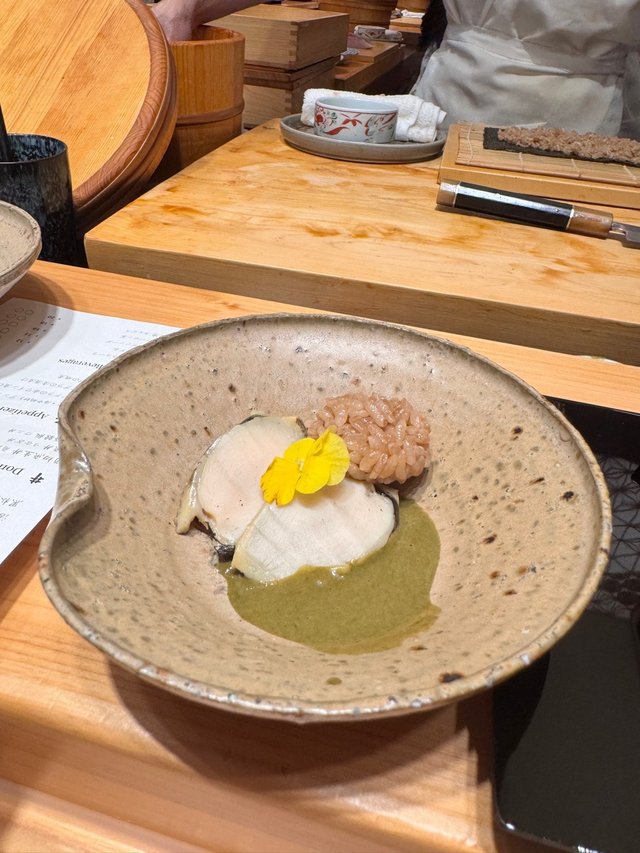 鮑魚完全不是重點重點係嗰張超濃郁有啲似蟹膏嘅香氣咁松露蒸蛋松露嘅味道充滿成個口腔而且個蛋蒸得好滑仲免費送咗俾小朋友食小朋友個杯好貼心冇放松露落去刺身好新鮮而且仲有新鮮嘅Wasabi食Wasabi好香完全唔會過分攻鼻必食之選