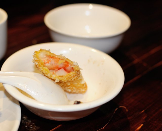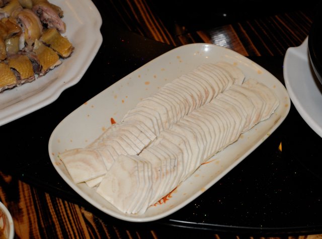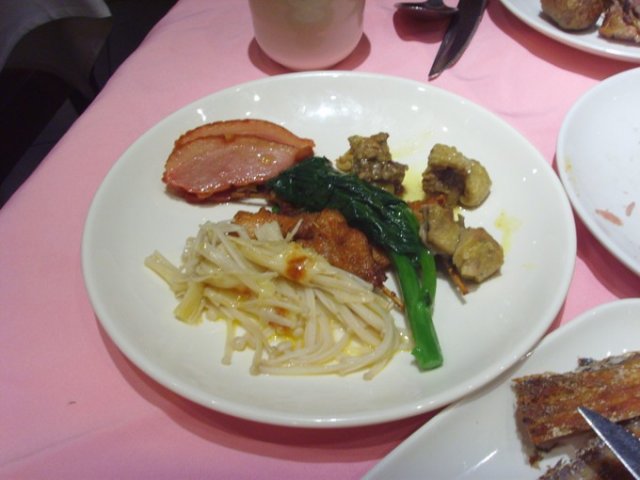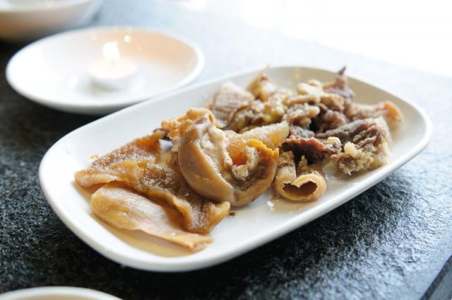 这里的出品味道给我最大的感觉就是偏淡,跟其他酒楼不同,这里的味道比较多元化,这或许就是新派粤菜的风格!招积叉烧,是土花猪的五花肉,只要肋排附近那薄薄的一层,半肥瘦的肉制作,味道很香,嫩滑多汁,传统粤式美食。沙田乳鸽皇,妙龄乳鸽,这样的鸽子骨头不会太硬,但脂肪比较饱满。肉质富有弹性,肥瘦适中。话梅猪手,据说餐厅用秘制祖传方法消除了猪手的肥腻,很爽滑,值得一试!豉油皇陈皮大肠,搭配陈年的陈皮,大肠油润光亮,鲜美可口,肥而不腻。青沙律蝴蝶虾酿酥莲藕,虾的下面有淡淡的wasabi和沙律酱,莲藕依旧很爽口。接着是黄金满地,这道菜的灵感来源是西关的传统小吃“香煎萝卜糕”,表面是一层很香的芝士酱,外表松脆,里面加入了墨鱼胶、鲮鱼滑,吃起来更滑更爽口,用来下饭很不错!清蒸钳鱼,鱼很新鲜,口味偏淡,多吃点也不怕!千岛木鱼花冻滑豆腐,炎炎夏日吃这个最适合,入口冰凉,豆腐很滑,挺好吃的!…查看更多