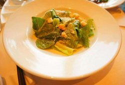 乾悦阁这家店是朋友请客光顾的,这家店开在都市路上的仲盛世界商城内,店面气派,环境整洁幽雅,服务员也很热情。当天给我印象最为深刻的就是凉拌朱角叶,这道菜在其他地方没有吃过,选用了新鲜的朱角叶汆水后拌制而成,里面搭配了用油炸过的大蒜头、松子肉、鸡蛋和些许火腿肉用橄榄油拌制而成,味道非常特别爽口,非常好吃。…查看更多