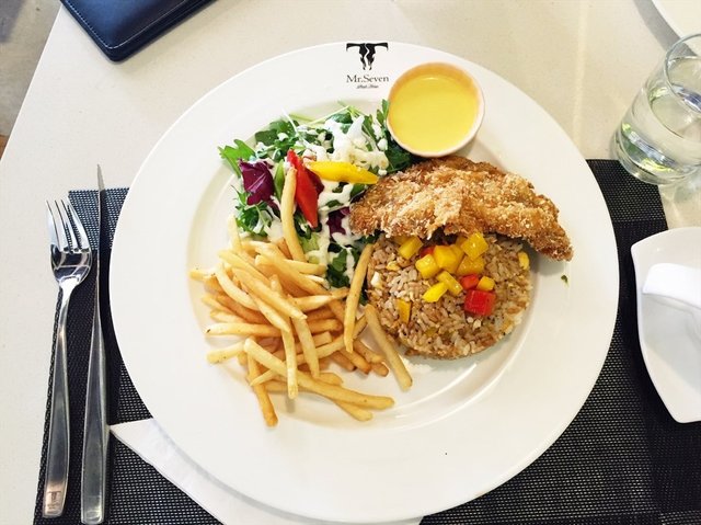 这家店听说很久了,一直想来试一下,突然发现有mr seven的团购,58元的双人餐,看上去很划算的样子~于是就买了并约了朋友前来探店~这家店位于世界之窗地铁站c1出口,上到地面后的右手边就是。取得时候因为是中午,所以很少人~有四人的木质桌椅,和三人的青绿色卡座,三人卡座看上去很奇怪,坐的时候感觉还可以~点了两份牛排,本来想点奶油汤的,结果告诉我今天只有蔬菜汤,真是的,没有就不要写上去啊。很快就把菜端上来了,先上的是汤,很小的杯子装着,很少汤,味道一般般。然后上了扒,我同学来了才提醒我说,不是牛扒么,我才反应过来,跟服务员反应了,她核对了之后,跟我说,猪扒可以继续吃,他门等下会拿牛扒上来~猪扒的味道还可以,盘子上还有薯条,沙拉,还有装了沙拉酱的碗。还有炒饭,炒饭的味道还不错,咸咸的,掺和了猪扒的炸米粉,挺好吃的~然后很突然的就上了送的酸梅冰沙,冰沙不是应该最后才上的么+_+吃了一半猪扒!肯定是继续吃完猪扒,吃完牛扒才吃冰沙阿~~真是的。过了一会儿牛扒端上来了,四小块,不知道本来就那么少还是怎样,不过牛扒一般般,很难嚼。还不如猪扒~最后尝了一下冰沙,已经融城水了味道一般般~用的来说勉勉强强吧,服务态度不错…Read More
