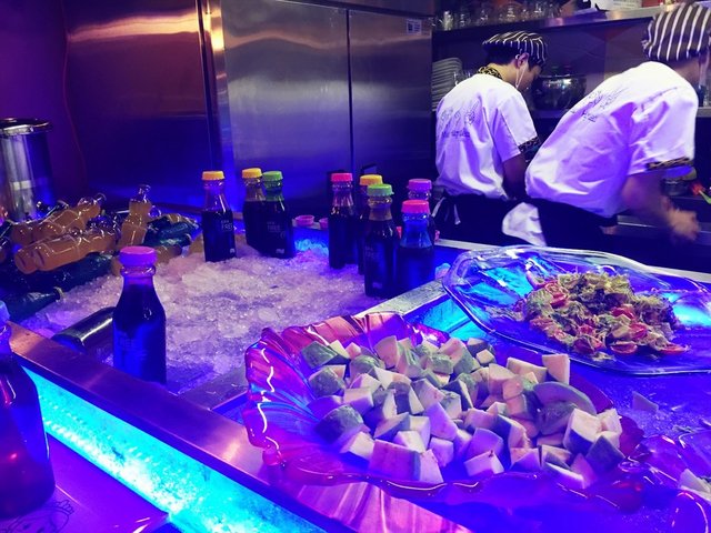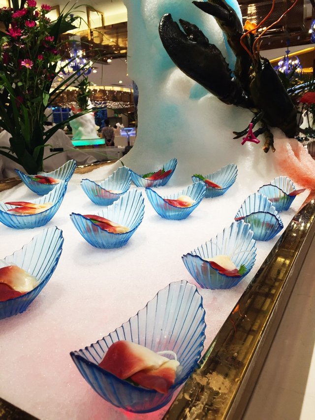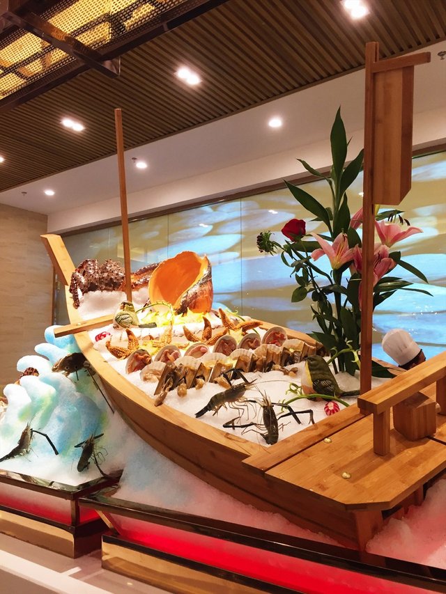 这家店位于海岸城scc中洲控股大厦,就是浙礼对面那里。走入店面,一派富丽堂皇的景象,服务员安排我们坐下,去的时候并不是很多人,并没有四海一家人声鼎沸,人少也是图个清静。服务员服务态度都不错,走在大厅里,预见服务员都会跟你说一声晚上好。大厅入口左手边是饮料以及甜品区,直走,左手边就是熟食区。右手边就是海鲜区。每桌都有一份刺身拼盘,拼盘上游龙虾、三文鱼、蘑菇、还有鲍鱼、北极贝。还有每位可以选辽参或者是鱼翅。【海鲜区】海鲜区很丰盛,有海胆、章鱼、北极贝之类的,很新鲜。【熟食区】有牛仔骨,羊排,烤虾,还有蒸蛋鱼子酱,还有炒饭。尝了一下,很喜欢烤虾还有羊排~【饮料甜品区】饮料的杯子都很好看,比如说苹果汁的杯子是埃菲尔铁塔的,西瓜汁是骷髅头的。还有哈根达斯,有芒果味的、蓝莓味的、提拉米苏味的,我比较喜欢抹茶、蓝莓、芒果味的^_^甜点一般般,哈根达斯倒是不错预知更多,大家可以自己去吃~(*^__^*) 嘻嘻………Read More