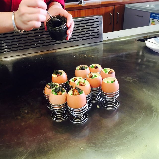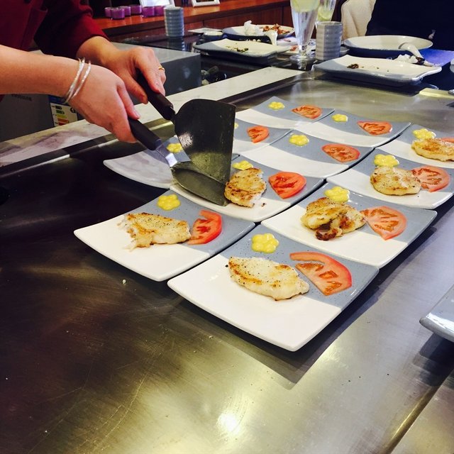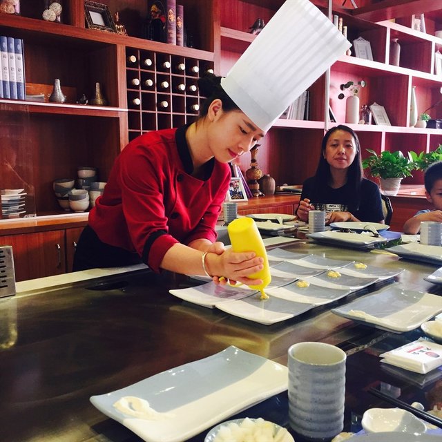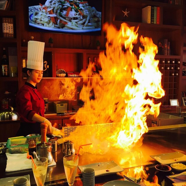 火舞铁板烧位于民乐上河坊,就在即将开业的海底捞对面~走进店铺,装修很精致,入口的右手边有一道书墙,很少看见铁板烧装修的跟书店一样~而且抽风系统做的不错,不会满屋子飘烟~一坐下来服务员就给我端上小菜,小菜有木耳和萝卜,很开胃。九节虾,12元一条,这是第一道菜,烤的时候,还会摆上造型~还不错冰岛银鳕鱼,98元一份,这个烤完之后会装在一个用特制的柠檬蛋黄沙拉酱,沙拉酱很特别很美味,微带点甜味~搭配口感细嫩的鳕鱼简直棒~特别喜欢他们家的牛小排,牛小排128一份,分为带了骨头的部分,和不带骨头的部分,带骨头的会烤的更熟一点,而且最后将白兰地淋上去,形成巨大的火焰作为收场,蔚为壮观~不带骨头的部分,大概是五成熟,嫩到出汁,但是不会很难嚼~可以搭配他给的椒盐~鸡排,38元一份,鸡排煎之前过了一层薄薄的面粉,鸡排烤的很嫩,也很推荐~猪颈肉48元一份,一开始还会以为是泰式的那种甜甜的很有嚼劲那种全瘦的猪颈肉,后来才知道是以普通的肉片的形式出现的,而且肥肉比较多~鹅肝鱼子蒸蛋,28元一份,把架在支座上的鸡蛋放在铁板上,然后拿一个罩子盖起来蒸~最后撒上葱花,放上鱼子酱还有肉块~环境~…Read More