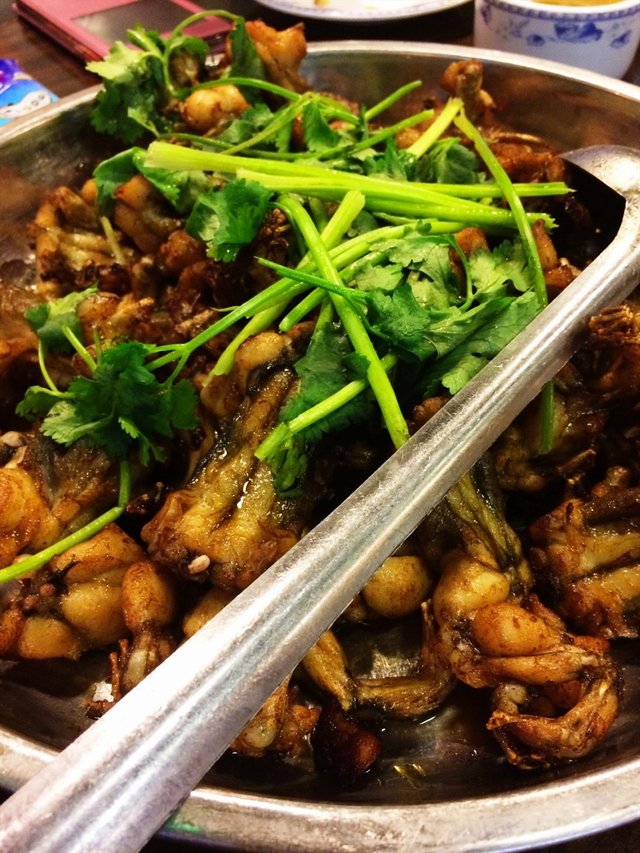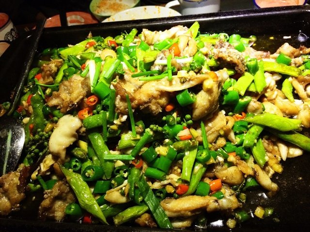 大排档形式,去的时候星期四晚上,还挺热闹,有包厢。买三斤送一斤,买五斤送三斤,我们去的时候还用了一张一斤的券。点了米皮还有微辣的蛙。米皮很好吃,跟肠粉差不多,皮很薄很有弹性。蛙上的比较慢,因为点了八斤蛙所以分了两次下锅。蛙处理的很好,去掉了头还有皮,一开始蛙没那么辣,到了下面越辣,很入味,很香嫩,蛙也很大,比平时吃的蛙大多了。五个人吃了八斤,感觉自己还能吃,很好吃!有点不过瘾。友情提示这家还能外带饮料哦。~…Read More