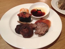 ☀☀☀☀☀☀如果人们不仅能够执着地追求美(味),而且能够敏锐地发现美(味)、自觉地创造美(味),那么,不仅他们自身会变得更加完美,而且整个社会、我们周围的一切,也都会变得更加完美,让我们一起发现身边的美(味)吧☀☀☀☀☀☀五星好评是因为好像找不出哪里有不妥因为买戒指找人给了不少的折扣吧,就合计请人家吃顿大餐,贝丽屋是吃不太起,还是自助吧,免得有不周,问了一些小伙伴,最后选定了这里,原因是五星大酒店,硬件没的说,再有就是人少,我吃饭就讨厌人多DP正好有团购,但是就是想不通为嘛3人有优惠不出个4人呢,差那一个还得高价晚餐是6点开始,我们就定的6点到,进人大堂,问了前台,跟着服务员到了桌位,验证即可,很方便,而且还没废话就开发票确实周一的晚上吃饭的人不是很多,而且加上我们去的早,很多菜品都保持了最开始的样子,但是我确实是不好意思那个手机过去拍照,只能拿到桌位再拍了,所以这样就错过了很多精美的摆盘其实我是吃过了太多好吃的,所以即便如此高端的自助,还是转了好几圈不知道吃点什么,挑重点说最先只定是来一盘三文鱼啊,我的最爱,这边不是现切的,可能是取食的人不多吧,都是大厨先切好的,而且也很大方一给就是一盘子,肉质中等偏上,灭了一盘鹅肝:这个应该是一般自助少有的,也是唯一一个取食造型美观的,口感不错,主要是不限量啊,不多也不好多吃,吃了几块也就腻了,煎的很嫩,一定要趁热,冷掉的口感差很多牛柳:这个我第一次去都没好意思问,那么大一块以为是装饰品呢,精美的不舍得让他们下刀,不过后来他们拿了,我吃了一口真心好吃啊,这个不亚于一般的牛排店还有各种海鲜,只是我不爱,大多都是冰鲜,没啥特别的味道,需要蘸酱油吃唯一的缺陷就是饮料品种太少了,幸好有西米露另外他家的蛋糕品种不多,但是品质还可以冰激凌不错,有很多搭配可以一起吃…查看更多
