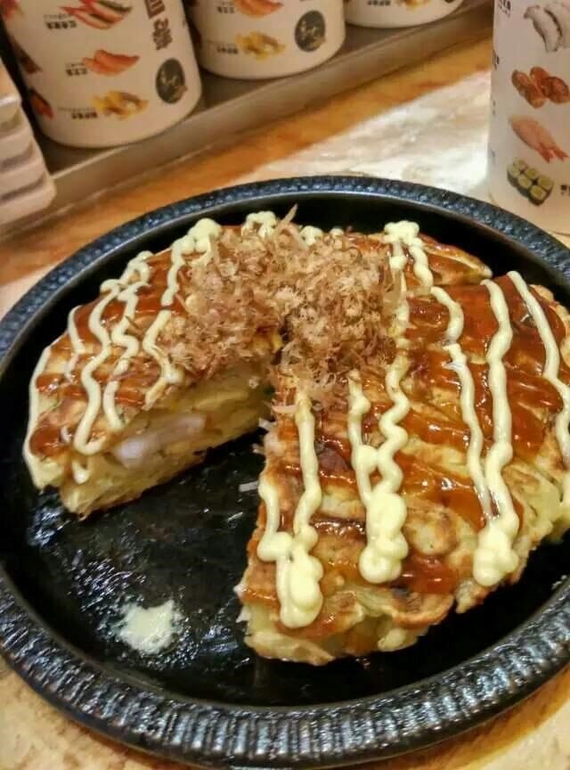 前几年来说,这家万岁寿司店倒是挺受欢迎的,而且分店也越开越多,但是近几年,广州的日料店越开越多,我也比较少来这里帮衬了。跟朋友逛街的时候,恰好路过这里,也就来试试了,也团购了88折的团购券。周末客人也不算很多,服务可以,环境干净。大阪海鲜烧饼,很大个烧饼,卖相很吸引,烧饼表面有两种酱汁,新鲜吃有点脆的口感,很香海鲜味,口感都不错。…查看更多