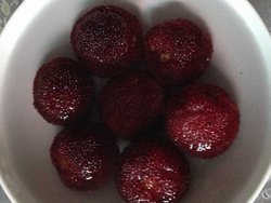 外地杨梅,酸爽度不高,颗粒很大。核很小,较甜,盐水中泡了5—10分钟,没有虫子爬出杨梅,新品种?抑或农药缘故?杨梅新鲜,汁水真是多,吃一口,嘴巴里都红了,甜,老人都爱吃了…查看更多