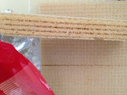 小小一包威化,3元都不到的价格。数量上没抱多大信心。薄塑料盒,轻便也防止饼干碎,一盒2层,每层3块。威化仔细看内部也有分层,颜色深的部位是花生酱,咬一口,干干脆脆,花生味道布满口腔,甜甜蜜蜜。第一口因为唾液缘故,些许饼干会粘在上鄂,但还是喜欢…查看更多