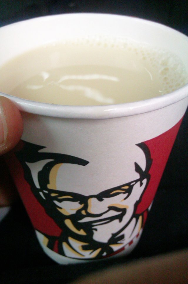 在附近开会没带水,趁空挡就近系kfc买左杯豆浆,服务员姐姐点餐好迅速哦,基本没怎么等就拿到餐了,服务不错哦!可惜豆浆味道一般,饮得出是粉冲的,而且冲得比较淡,没咩味道,没甜味!都系觉得距呢度既牛奶好饮d,起码浓d!…查看更多