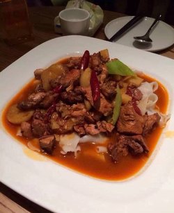 充满风情的新疆菜,吃了一次后就感觉不会忘记了,觉得新疆菜真的是好好吃的,酸奶做的很有草原特色,酸奶即浓郁又粘稠,吃到嘴里还有点果冻般的爽滑,大盘鸡对于肉食者来说真的是再好不过了,有一点点的香辣味,鸡肉很嫩,就算是里面的洋葱也觉得好好吃。…查看更多