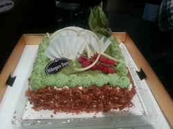 男朋友过生日,订了他家一款500g的抹茶冰淇淋蛋糕,没办法,谁让我是抹茶控呢~~蛋糕不错,很好吃,上面是冰淇淋,下面是薄薄的蛋糕,超爱抹茶味道。蛋糕整体造型也不错,很讨人喜欢,500g比想象中大多了,两人吃绰绰有余~~…查看更多