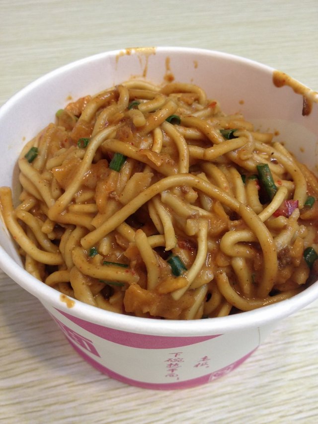 晚上将近10点,周边小食店,大多关门,环视之下,看到这家热干面店还开着,于是,要了一份热干面(6元),店名号称正宗。刚端上来,没有香味扑过来,吃的时候也没有,糊糊的口感,实在不好受,面断成小条,一嚼即短,口感差得可以,味道倒也算浓郁,微辣,还有些许萝卜粒带来的爽口。这哪里是热干面,还正宗?把图片发给湖北朋友,第一句话,回复“这都不是真正的热干面”。这热干面,填肚之用,何来正宗。…查看更多