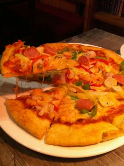 从中关村出来,直奔这里吃饭。第一次去这边,我们都不是很熟悉路线,一路慢慢寻去,居然还找到了。进门看了看环境,还算比较温馨。我们选在了里面的角落。有几桌外国友人全家都在这里聚餐,洋娃娃楼上楼下跑来跑去,很热闹。这里的价位还是比较实惠的。尤其是中午还有经济套餐。我们点了牛肉汉堡商务套餐和海鲜披萨。总共不到100元。套餐里面有薯条,焦脆很喜欢。牛肉汉堡也很大个,味道也蛮浓香的。…查看更多