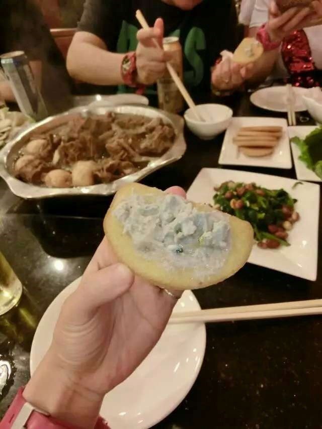 来吃羊蝎子首先它家,味道鲜美,就是有时候汤汁有一点咸,羊蝎子肉质紧实,口感不错,嫩嫩的,吃完肉直接是涮菜还有面条,还喜欢吃它家的馒头片抹臭豆腐,臭豆腐是闻着臭吃的香,馒头片脆脆的,好吃的不得了。…查看更多