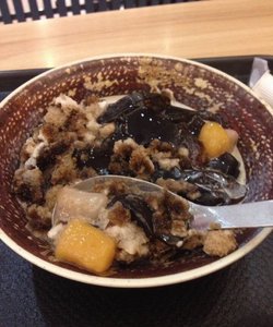 非常韩系的甜品,超大份,上面有很多的年糕还有一种花生粉和核桃粉混合的粉末,粉末感太强烈了,吃到喉咙里会觉得喉咙有点干涩,最后把融化的冰激凌和粉末搅拌在一起吃觉得还不错,总体吃完让人觉得好清凉啊。…查看更多