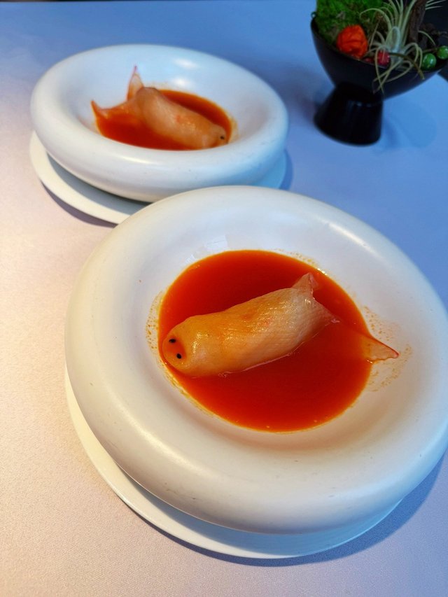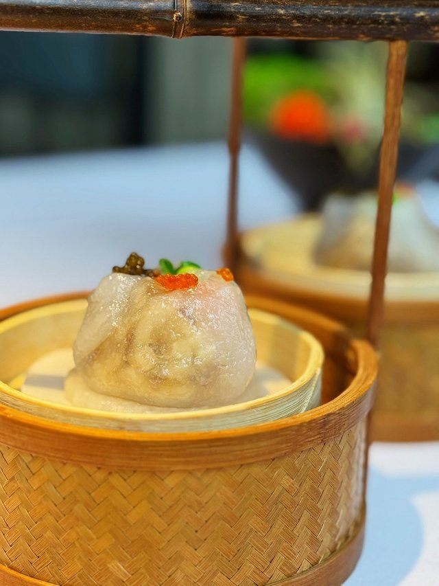 一進門,精雅脫俗的裝修便讓人心情舒暢,低調奢華的氛圍非常適合聊天小聚。服務生的接待十分到位。我們二人點了一桌點心與主食,每一道都充滿驚喜:「龍蝦湯金魚餃」🐠晶瑩剔透的餃皮巧手捏成金魚造型,栩栩如生。服務員在我們面前緩緩將熱騰騰的龍蝦湯倒入碗中,瞬間香氣四溢。金魚餃在澄黃的湯中徬彿游動起來,口感滑嫩,內餡鮮美,與濃郁的龍蝦湯底是絕配。視覺與味覺的雙重享受,必點!「金不換鮮蝦雪茄春捲」🚬創意滿分!長長的雪茄造型非常吸睛,絕對是打卡首選。外皮極其酥脆,咬下去「咔嚓」作響。內裡是滿滿的鮮蝦彈牙餡料,伴隨一絲金不換(九層塔)的獨特香氣,解膩又提鮮。好吃又好拍!我們二人點選的菜式,幾乎每一道都堪稱藝術品:推薦菜式:「窩蛋黃牛肉石鍋飯」必點主食!上桌滋滋作響,將蛋黃、嫩牛肉和飯攪勻,鍋巴香脆,非常惹味。「XO醬蘿蔔糕」蘿蔔糕煎得外脆內軟,XO醬真材實料,鹹香鮮辣,提升整體風味。這裡的食物不僅好吃,更是一場賞心悅目的美食藝術。…查看更多