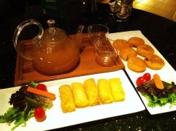 对于香格里拉黎滴星级既自助餐一直都好抱有期望,所以当我拿到张价值338蚊既自助餐券时,心里面简直激动无比。用餐环境还可以,分为室内、室外、二层。岩影无两张相,就俾服务员好有礼貌敢制止左,话呢度唔可以影相。唯有死死地气寄情于食物。老虎蟹,几乎都系大家主攻既对象,冷盘,遇岩有蟹膏既你就发啦,滴蟹膏好香好正。好多人都想食长蟹脚,其实讲真啦,好麻麻噶~蟹肉又唔嫩滑,入口感觉有滴霉有滴散,肉唔够老虎蟹鲜啊~翡翠螺就系我所好了,无乜特别,就系贪距啖啖肉,够爽口,有螺肉独有既鲜味。新鲜元贝最适合我地呢滴食肉兽,因为……好大既一旧肉啊~鲜甜啊~弹牙啊~哎,流口水啦~食大青口时,记得要拣带橙红色个滴,嘿嘿,膏啊~呢度滴八爪鱼超新鲜,唔似以往响其他店食既八爪鱼刺身敢水溅溅。师傅帮我煮完米粉后,自己加入香葱、芫西,再跑去做片皮鸭个度夹晒距滴鸭肉落去,鸭肉米粉,HOHO~呢只小朋友正啊,望落好似果冻,实际系果酱,酸酸甜甜好开胃。甜品控们,动起来了,配上一杯咖啡,爽死你。呢度既马卡龙做得几好噶,仲有个件正方型黄琴琴既野,如果你中意食榴莲既话,你就真系要食啦,保证满口榴莲味。最后,雪糕必不可少啦挂,杂莓+芒果。米睇呢度滴野几好食,但当你食完之后,你就会有唔满足既感觉,因为敢既价位,海鲜类太少啦……对唔住个价格。除左茶、咖啡、水之外,无其他饮料提供。…查看更多