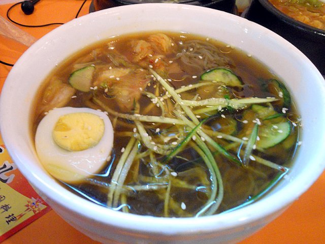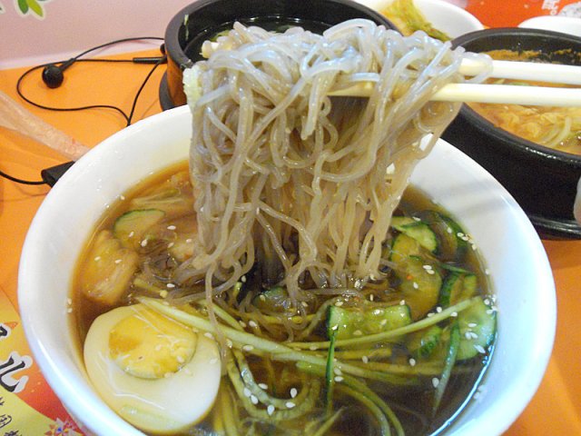 这个韩国料理店别看十分简陋但人气很旺,就几张长长的台子和板凳,就等于是时尚天河里的“露天铺”。看时尚天河这么多店除了鲜芋仙见过这么多人,还没见过第二间这么多人的。我和朋友点完还没有位子坐,等到搞到要打包走的时候才有位空出来。 我吃的是韩式冷面,很大碗,里面配料有半只鸡蛋,青瓜片青瓜丝,熟芝麻,面的口感和粉丝差不多,问店员有没搞错,店员说就是这种面来的。汤是酸甜味道的,吃起来加上芝麻的香,好有开胃的感觉。就餐环境比较差,旁边就是时尚主通道,很多行人来来往往。讲究环境的这里不是理想之地。…查看更多