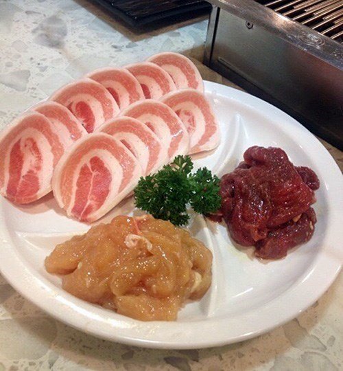这家店就在车道沟这边,天然转凉,就开始了火锅烤肉的节奏了。我们点了一份烤三拼,88元一份,虽然有点小贵,但是有3种肉,肥牛、五花和鸡肉,可以多吃一些品种,所以我很喜欢点拼的菜品,鸡肉很嫩,用油拌了的,所以不会粘篦子。肥牛一般,哪是肥牛呀,明明就是瘦牛肉。五花肉很不错,肥瘦相间的,而且很容易熟,特别好吃。…查看更多