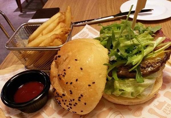 这家店就在那里花园,环境布置的简洁随意,给人特别舒适的感觉。原味薯条大家都很喜欢,外皮有一层薄薄的盐,现炸的,切的也很粗,口感可以说是外焦里嫩的,虽然是油炸的,但是一点不油腻,蘸着番茄酱吃挺香。…查看更多
