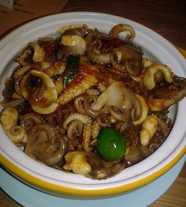 这家店就在鸿坤广场4楼,环境还是挺不错的,新开的,很干净。我还是比较喜欢吃八爪鱼粉丝煲的,38元一份,八爪鱼口感很嫩,嚼着特别香,粉丝是挺劲道的,而且也入味,最主要一点是不糟。…查看更多