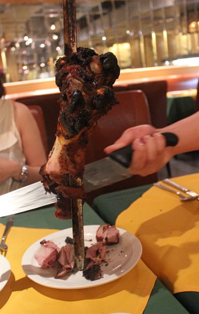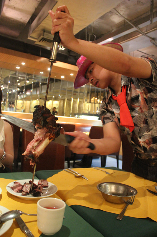 环境还不错,来得比较早,人还不多,占了个好位置。另一边现场乐队演唱,不过不是我喜欢的音乐。吃的选择挺多的,凉菜、老火汤、麻辣烫、热菜、各种杂粮、蛋糕、甜品,不过这里最丰富和最有特殊的是各式烧烤。厨师会在一边烤好培根、牛肉、羊肉、鸡腿、鹌鹑等等,然后打扮成墨西哥牛仔的服务员就会那种刚烤好的肉类来的我们面前,要那样要多少就切多少。很新鲜,味道很赞。我最喜欢的是这里的烧排骨和蜜汁叉烧。肉好多,肥瘦适宜,叉烧甜度刚刚好,而且不会烤的太过火,不敢身,好好吃。还有一个不知道是什么肉,看上去很肥,其实一点儿也不,很不错。然后这里还有没人每次只能拿一份的蒜蓉生蚝和芝士焗生蚝、烧烤茄子……生蚝超好吃啊,尤其是芝士焗生蚝,有拉丝,芝士味挺浓的。不过烧烤茄子没有街边烧烤摊的好吃。店里两个用大缸热着的特色汤比较好喝啦,其中一个是鳄鱼汤……没喝过,不过感觉味道和骨头汤差不多……但是喝的出味精味。蛋糕就一般般了,有两个还超甜腻一点儿也不想吃。不过面包却很好吃,外皮够脆,里面确蛮松软的。加上黄油,还不错。而桂花糕啊、西米糕什么的都很不错。雪糕超硬的,拜托男生帮忙,费了挺大的力气也只能挖起来三分之一个球……抹茶味的超好吃。…查看更多